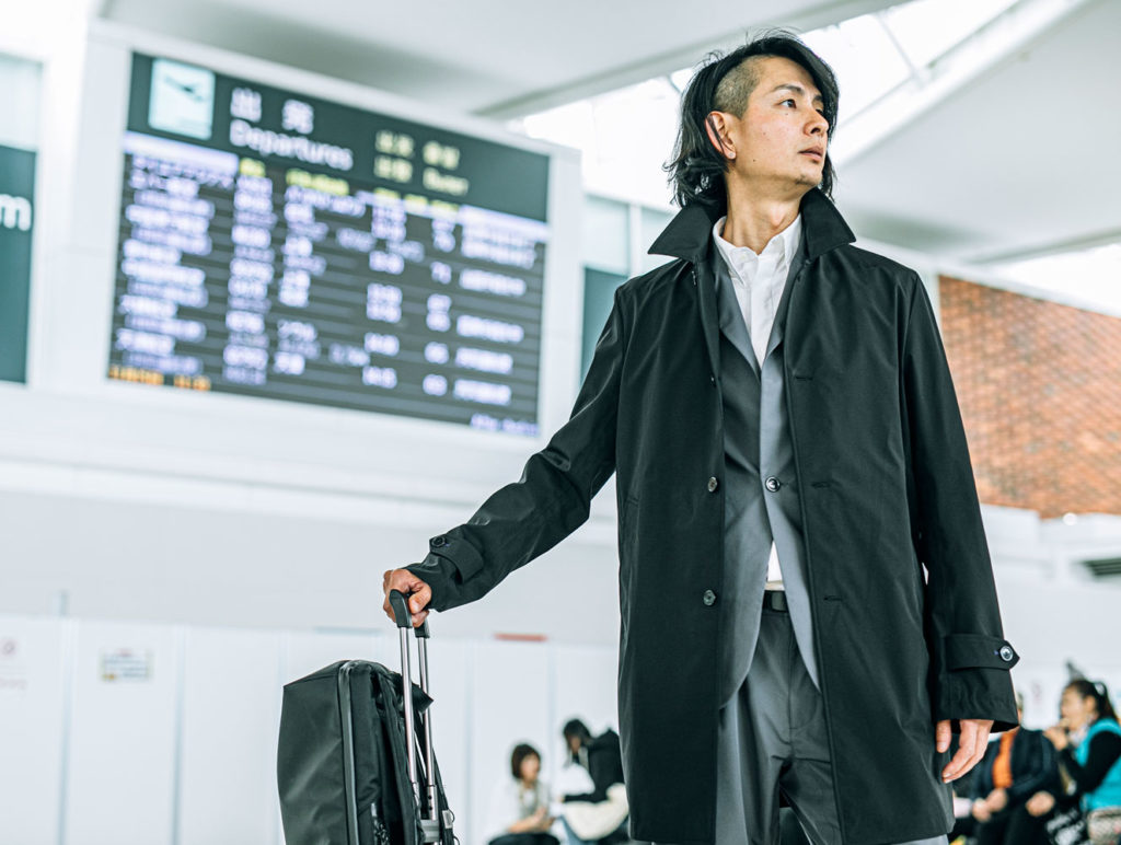 寒い屋外から暖かい屋内へ。寒暖差がある場所でも、高い数値の透湿性生地が 内部の蒸れを大幅に軽減してくれます。さらにはストレッチ性素材なので、立ち座りが多い 空港や駅など、ストレスなく行動ができます。